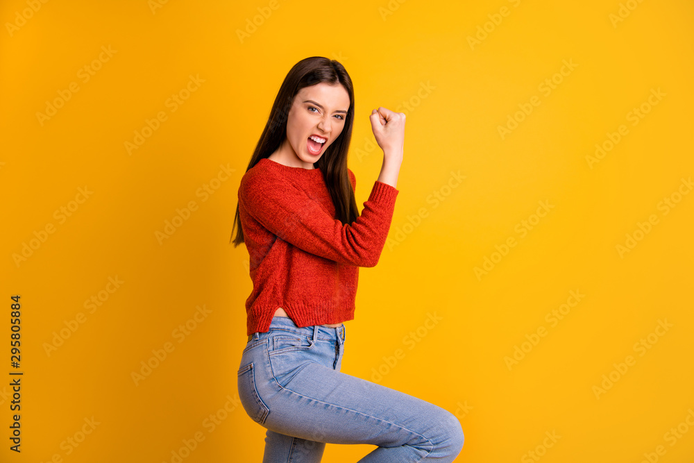 Photo Of Rude Screaming Impressive Girl Wearing Jeans Denim Showing You Hanging Greenery Plants Faux Indoor